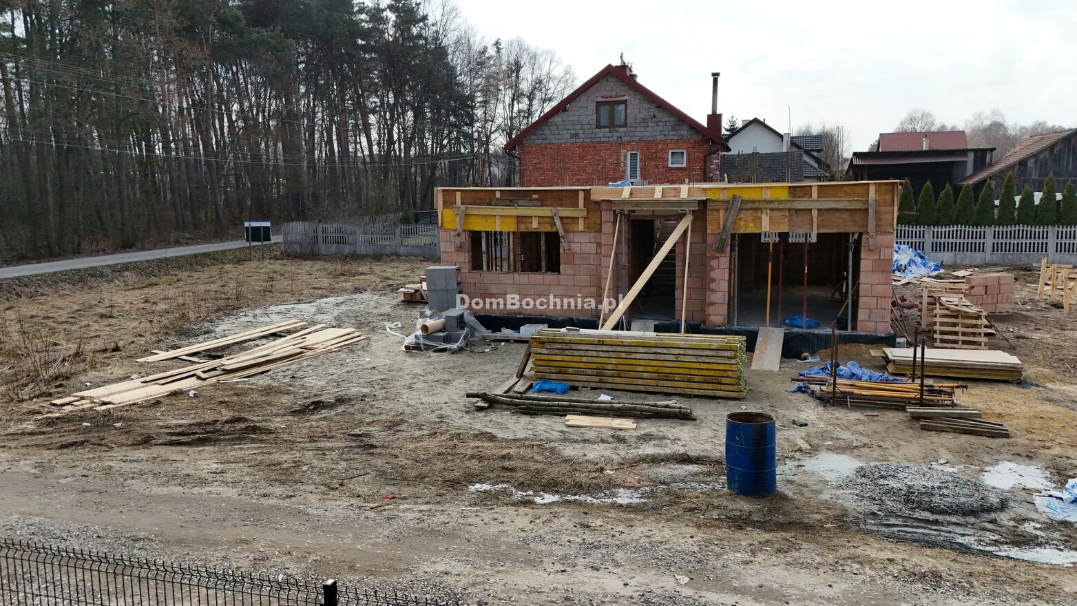 Dom murowany solidnie z pustaków ceramicznych, kryty dachówką ceramiczną Roben, stan surowy otwarty. Panelowe ogrodzenie z 3 stron działki w cenie. Obecnie mamy wylany strop, dach będzie gotowy do końca maja.