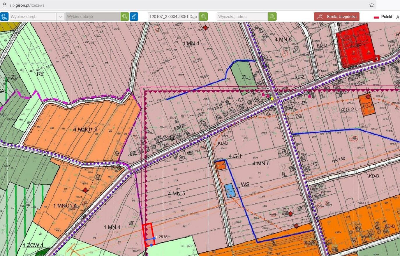 Część działki wyłączona z zabudowy jako strefa ochronna dla wysokoprężnego gazu.